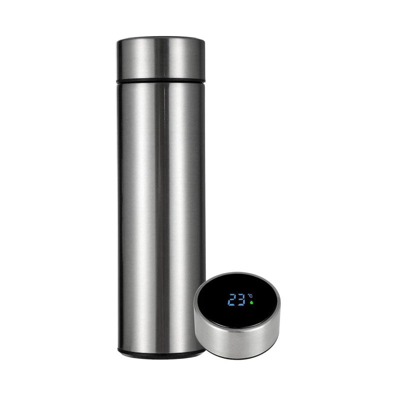 Termo inteligente con pantalla que te indicara la temperatura de tu debida, la pantalla led es impermeable y puede sumergirse completamente en el agua, lo que la hace segura y fácil de usar. La tapa tiene un chip inteligente incorporado y un modo de ahorro de energía, la pantalla se apaga automáticamente después de 3-4 segundos. Tiene la capacidad de mantener el calor y el frío. Gracias a la tecnología de vacío de doble capa más avanzada y tapa sellada a prueba de fugas. Material: acero inoxidable 304 apto para alimentos Capacidad: 500 ml Varios colores